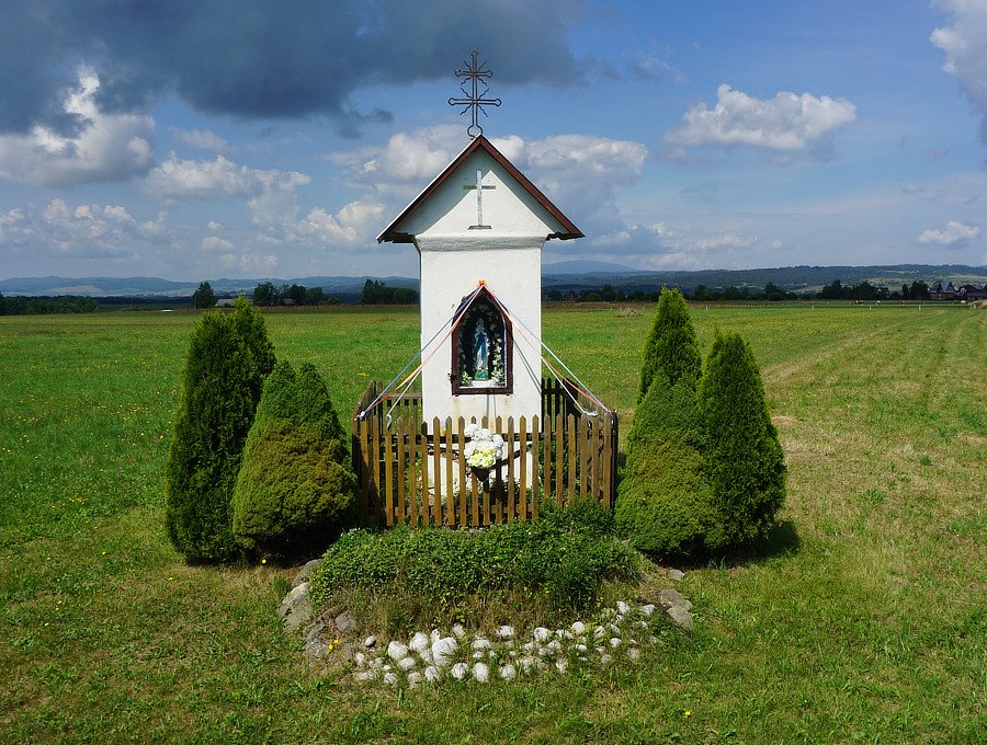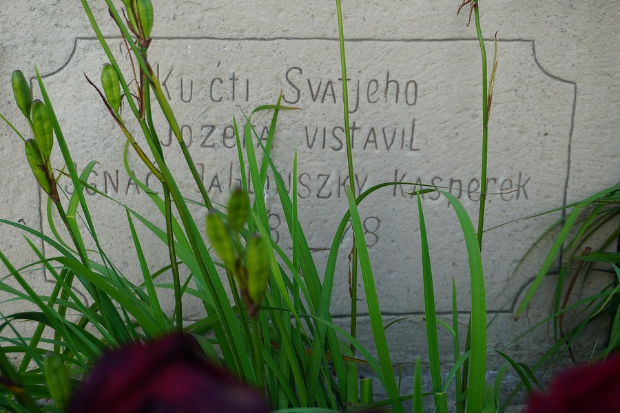 8. Kamienna kapliczka słupowa z figurą św. Józefa , 1878 r., f. Ignač Jablonszky Kasperek [Za wsią, przy drodze z Jabłonki do Lipnicy Wielkiej]