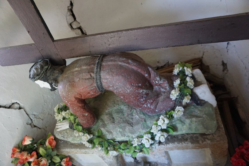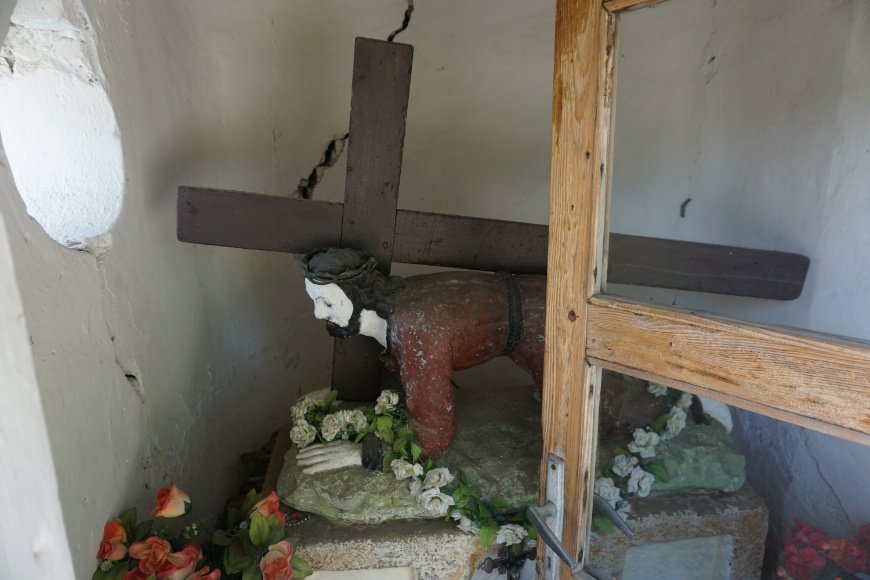 1. Kapliczka domkowa murowana z kamienną figurą Jezusa upadającego pod krzyżem, 1780? r. (figura) - 1937 r. (domek), [W pobliżu kościoła, obok domu nr 352]