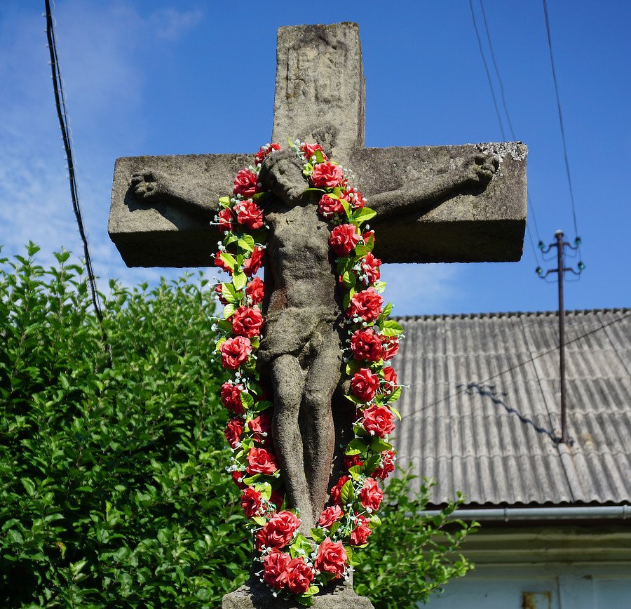 4. Kamienny krucyfiks słupowy, 1907 r, f. Józef Morawa [przy drodze, naprzeciw posesji nr 387]