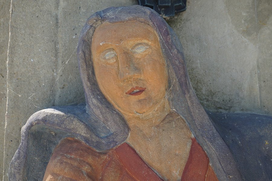 Ilustracja: Matka Boża Bolesna, Kamienny krucyfiks słupowy, 1830 r, Lipnica Mała
