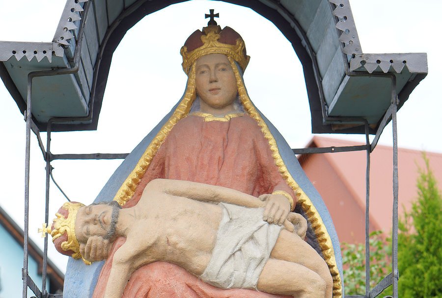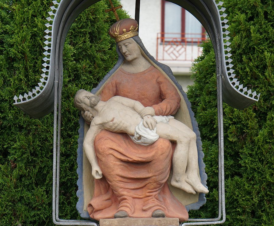 3. Kamienna kapliczka słupowa z rzeźbą Piety, 1839 r, Marta Rokicka [przed posesją nr 44]