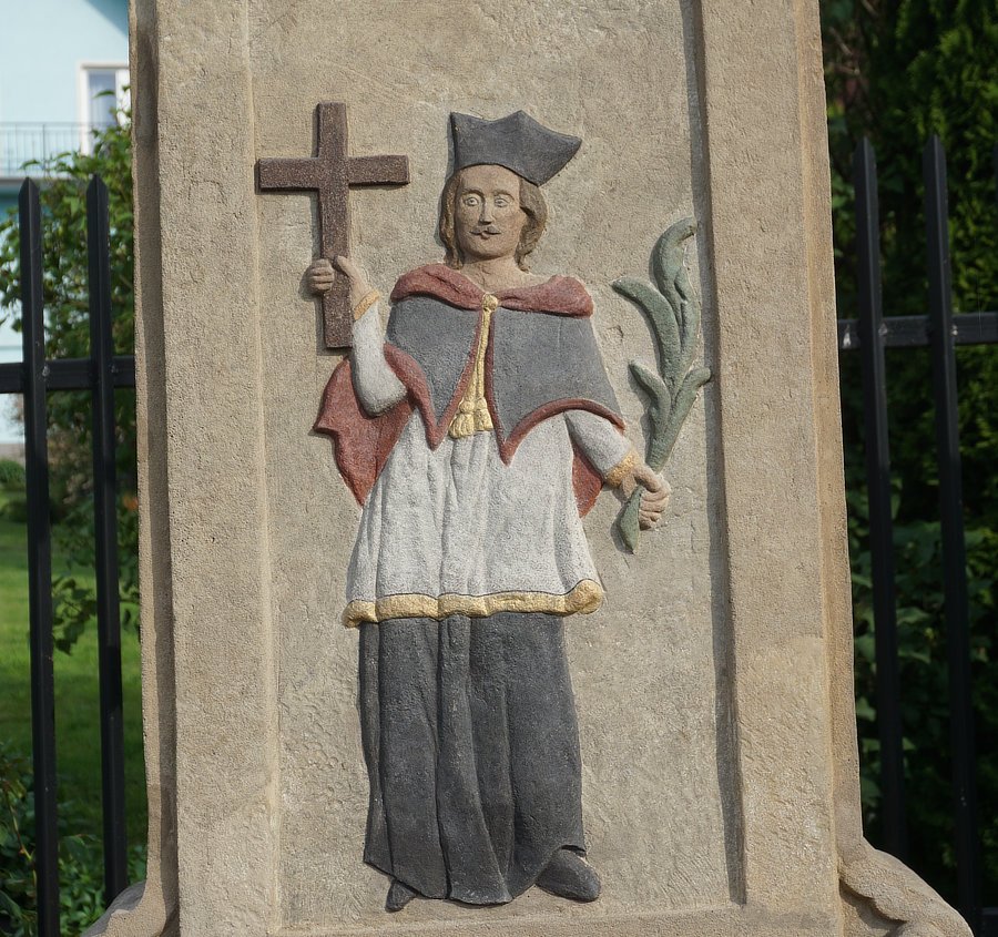 2. Kamienna kapliczka kolumnowa zwieńczona płaskorzeźbą Chrztu Pańskiego, 1833-1839 r, f. Jan Torgos [naprzeciw domu nr 311]