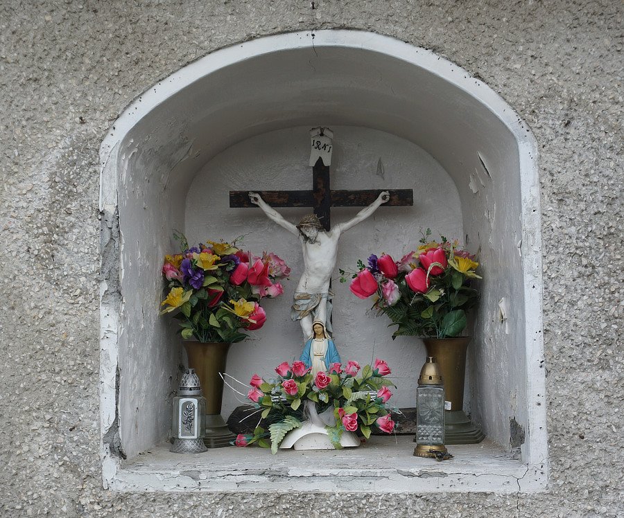 5. Kapliczka wnękowa murowana z figurą Ukrzyżowanego, II poł. XX w., [naprzeciw domu 146a ]