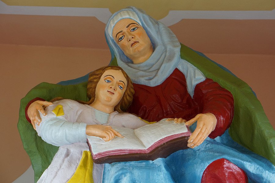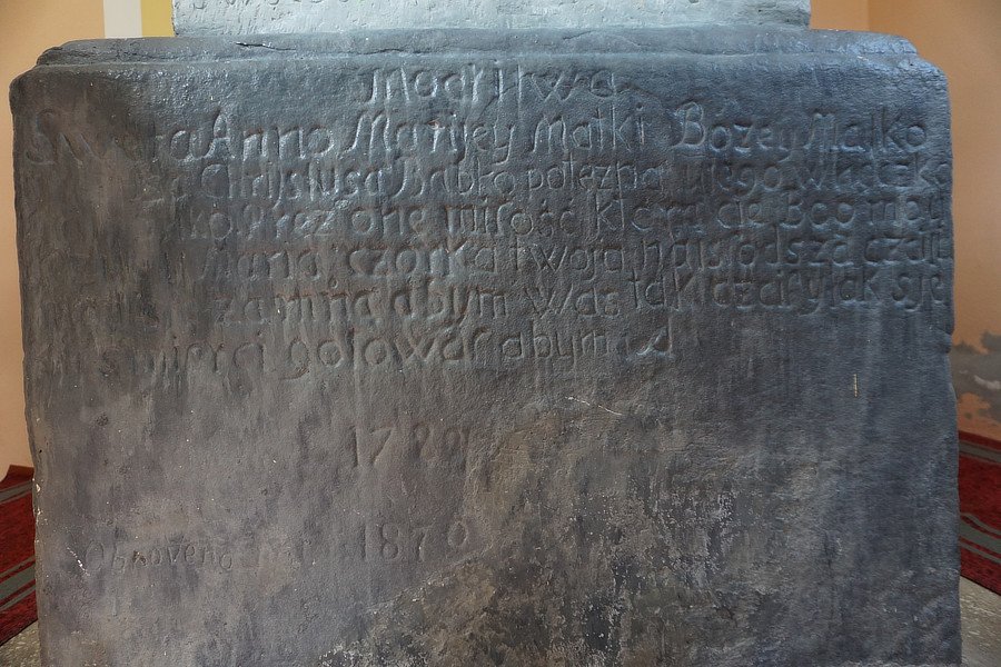 Ilustracja: Józef z Dzieciątkiem, kapliczka domkowa z kamienną figurą świętej Anny z Marią, 1724 r., Podwilk