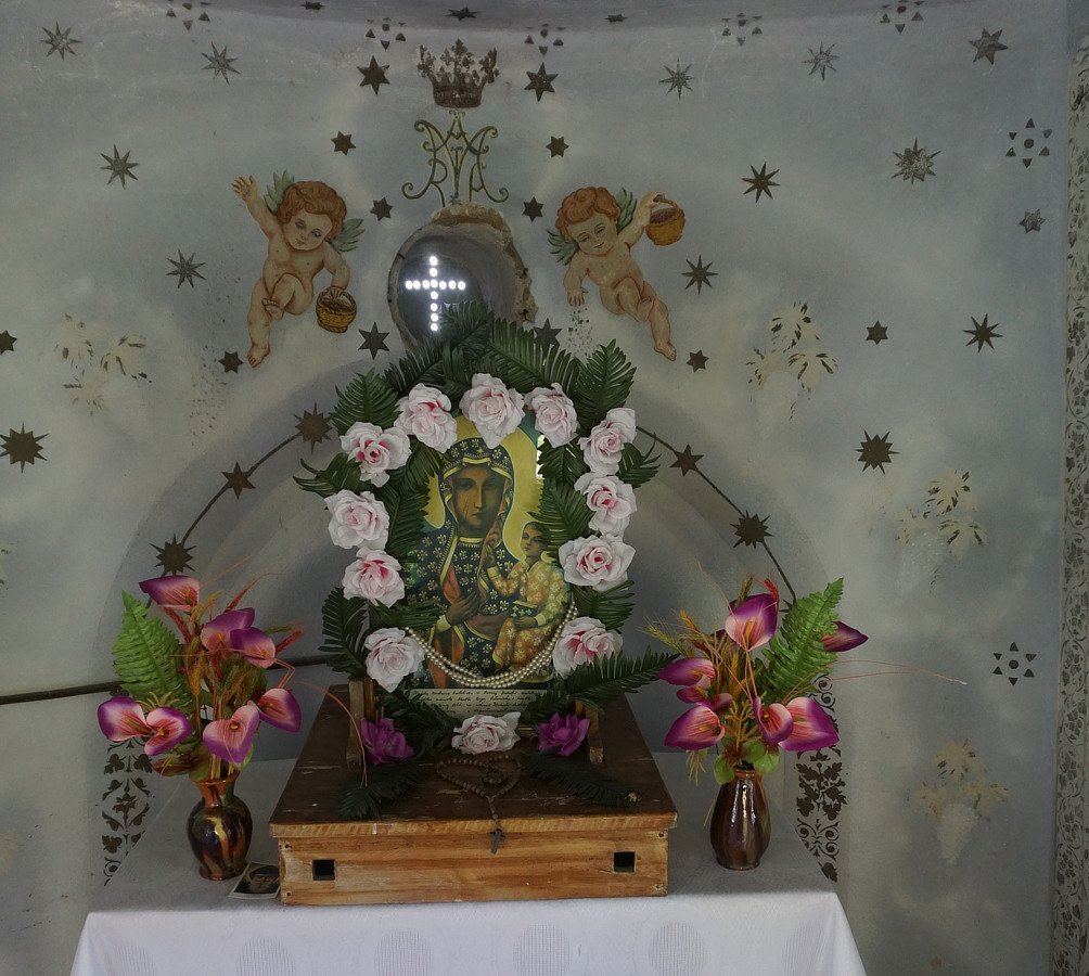 9. Kapliczka domkowa z obrazem Matki Bożej Częstochowskiej , 1960r, [Danielki obok dzwonnicy]