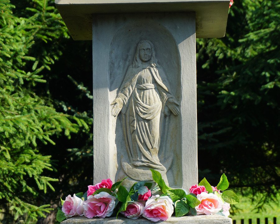 5. Kamienna kapliczka słupowa z figurą Matki Bożej Różańcowej, 1906 r, Jan i Maria Omilyak, [Przed posesją nr 517, Zubrzyca Górna]