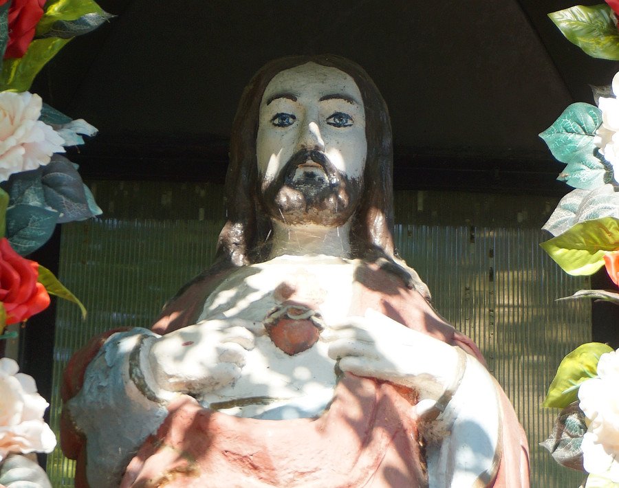 4. Kamienna kapliczka słupowa zwieńczona figurą Jezusa z gorejącym sercem, 1906 r., f. Jan i Maria Malesa [W pobliżu domu nr 242, Zubrzyca Dolna]